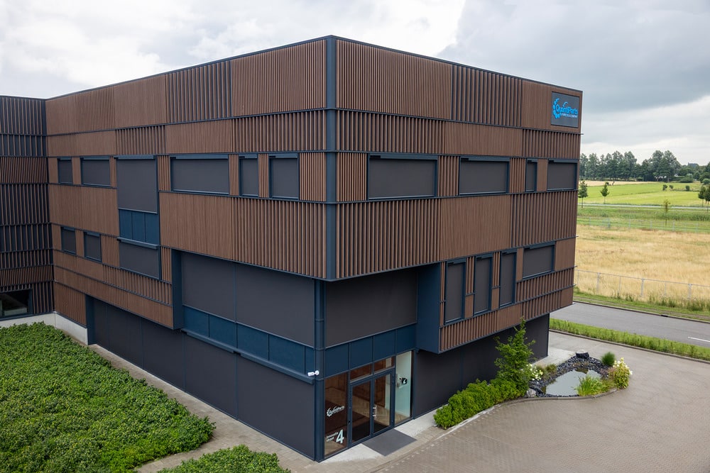 Voor dit grootschalige project kreeg Aldura de opdracht om het gehele kantoorgebouw te voorzien van hoogwaardige buitenzonwering. QuantiParts, leverancier van originele onderdelen voor scheepsdieselmotoren, realiseerde recent een nieuw warehouse en kantoorpand in Hattem.
