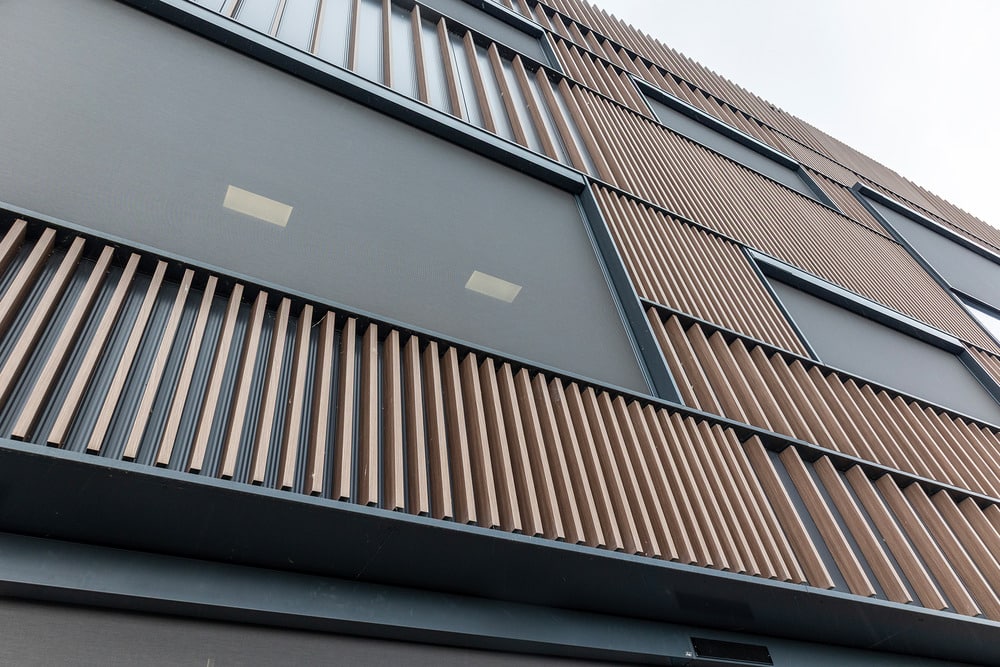 Aldura leverde en monteerde in totaal 60 screens in diverse afmetingen, volledig op maat gemaakt voor dit gebouw. Alle screens zijn draadloos uitgevoerd en werken op zonne-energie via een geïntegreerde accu. Dit maakte bekabeling overbodig en zorgde voor een strakke afwerking van de gevel.